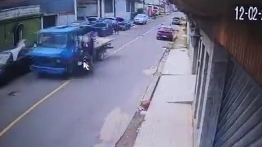 MANAUS (AM) – Uma câmera na rua Monte Castelo, no bairro Japiim, Zona Sul de Manaus, mostra o momento exato em que o motociclista Mateus Henrique Braga da Silva, de 24 anos, colide de frente com um caminhão. O acidente ocorreu na tarde desta segunda-feira (20) e ele morreu.