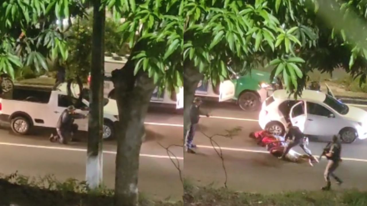 Um vídeo registrado na noite desta sexta-feira (12), mostra a ação dos policiais militares da 11º Companhia Interativa Comunitária (Cicom) para prender uma quadrilha que estava fazendo ‘arrastão’ no bairro Ouro Verde.
