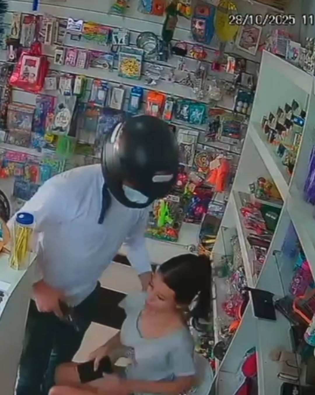 ITACOATIARA (AM) – Uma câmera de segurança da loja Divinale registrou o momento em que um homem de 28 anos invadiu o local para roubar. A atendente era a própria ex-companheira, identificada como Shaene, de 23 anos, que foi agredida, esfaqueada e baleada. O caso ocorreu em Itacoatiara, nesta terça-feira (28).