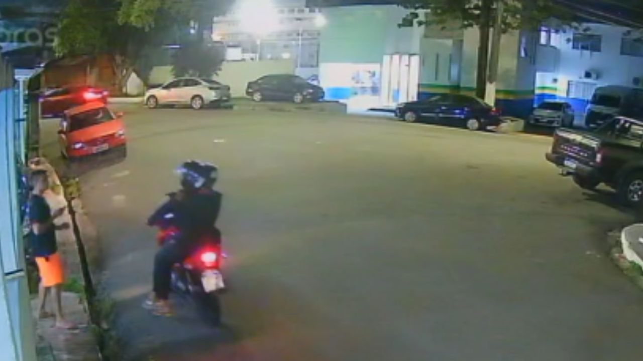Os bandidos audaciosos aparecem em uma moto abordando a vítima que estava com o celular na calçada de sua residência na rua Libertador.