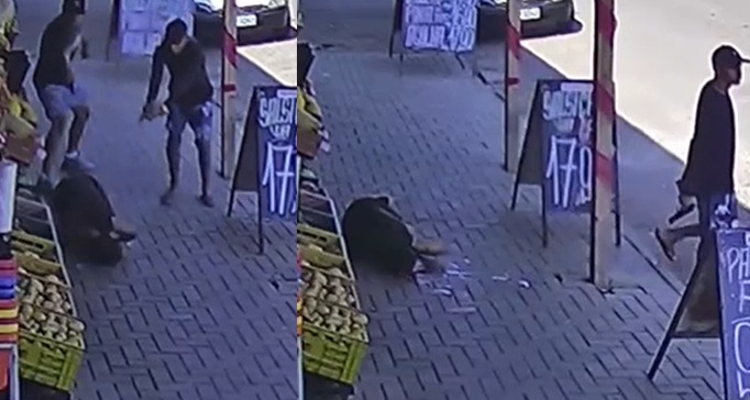 O comparsa até correu, mas o machão andou na boa pela rua. Não se sabe a motivação do crime, mas a calma do bandido chamou atenção nas redes sociais.