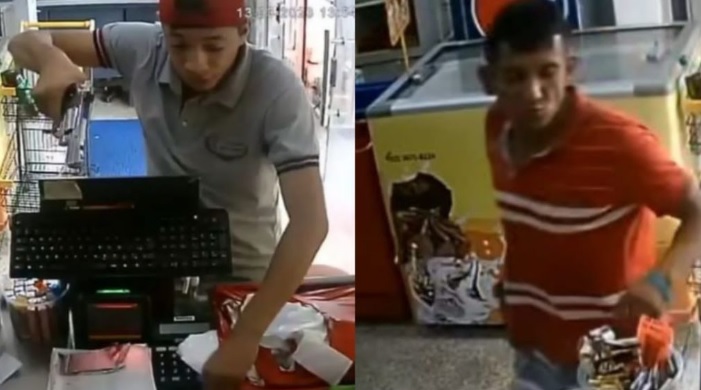 Câmeras de mercadinho flagram dupla invadindo local e agredindo atendente de caixa. pic.twitter.com/hNJX2JFInj