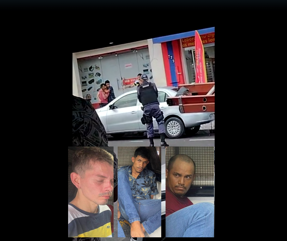 MANAUS (AM) – Um vídeo divulgado nas redes sociais mostra o momento em que as vítimas que foram feitas reféns por Allyson Henrique Pereira da Silva, 28, Leonardo Gama Pereira, 26, e Matheus Correa da Silva, 29, são retiradas da loja. O trio foi preso após fazer 20 reféns de escudo humano durante assalto a uma loja situada na Rua Saldanha Marinho, Centro, na terça-feira (31), retiram as vítimas da loja.