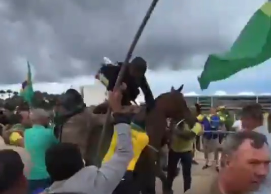 A imagem de um policial da cavalaria sendo agredido a pauladas por bolsonaristas comprovam o descontrole e a violência dos atos registrados hoje.
