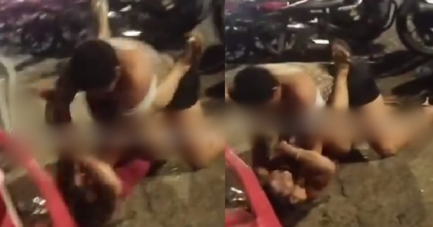 As duas rivais foram pro chão, fizeram trocação, e só não se mataram porque apareceu uma mulher para apartar a briga. Não se sabe o motivo, mas o estrago já está feito nas redes sociais.