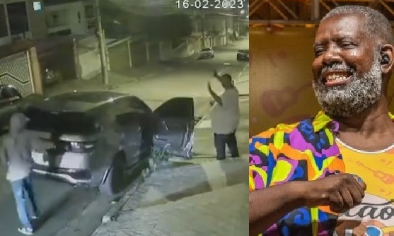 Vídeos mostram o momento em que o cantor coloca as mãos para cima e obedece as ordens do bandido armado.
