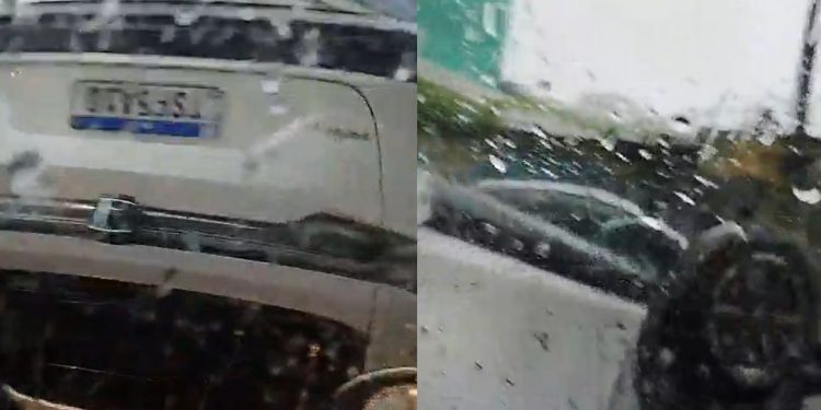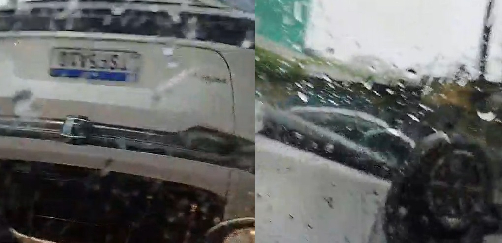 Um carro ficou de rodas para o ar e uma testemunha se espantou ao ver a situação do veículo. “Como o cara consegue uma proeza dessas”, diz o homem que filmou o incidente.