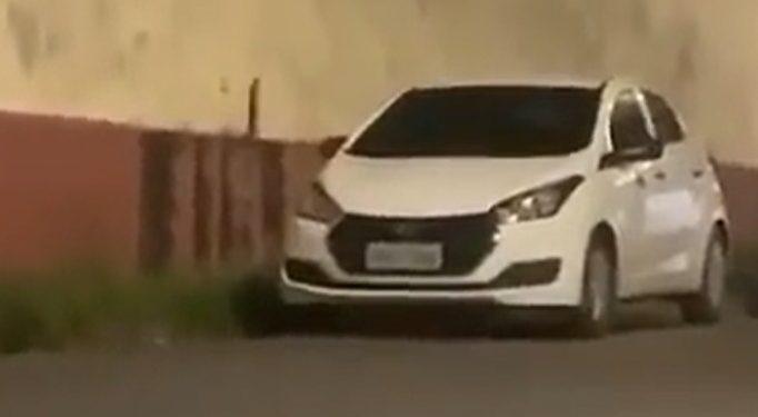 Toda a ação foi registrada por uma moradora da região. O carro branco, aparece nas imagens balançando em atitude suspeita.