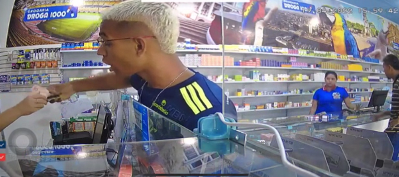 MANAUS (AM) – Câmeras de segurança da drogaria Droga 1000, localizada na avenida Margarita, no bairro Nova Cidade, Zona Norte, flagraram o momento que uma dupla assaltou com extrema violência o local, nesta terça-feira (19).