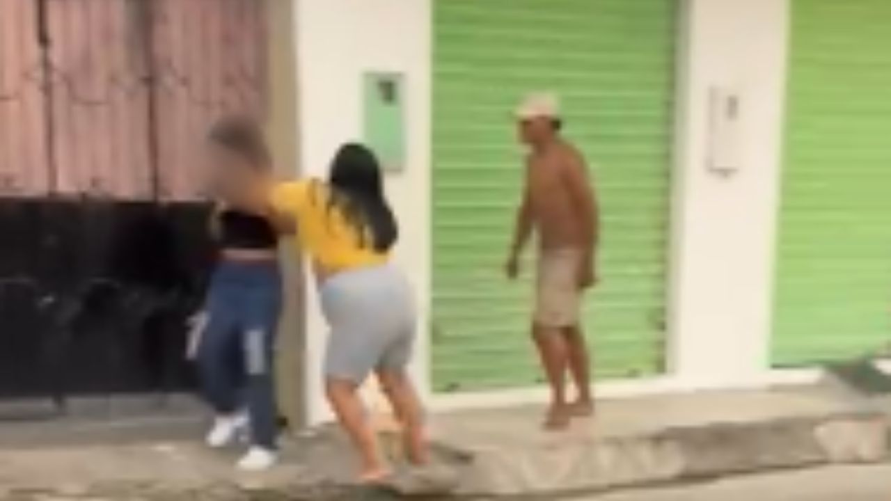 Nas imagens, o homem desfere socos e chutes enquanto grita: “Tu nunca mais vai bater na minha irmã”. A mulher puxa o cabelo da estudante e diz: “Filho da puta. Tu nunca mais vai bater na minha filha”.