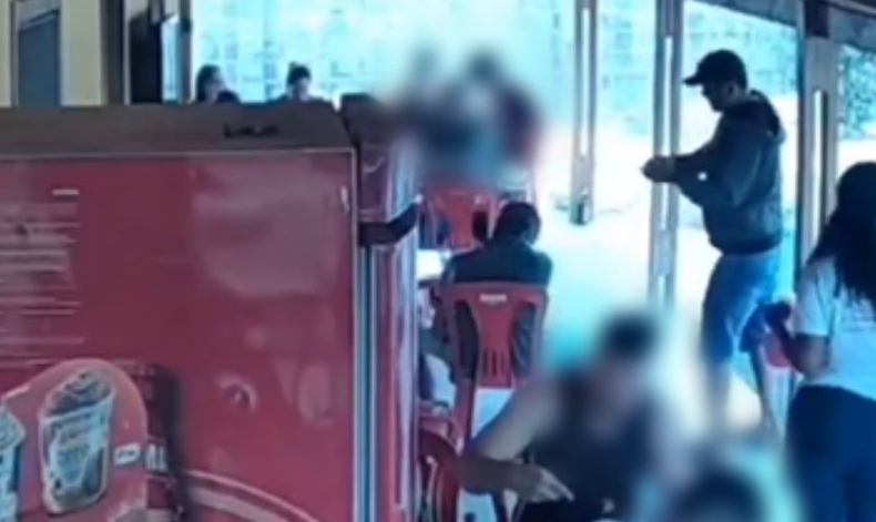 O crime foi filmado por câmera de segurança e mostra que o pistoleiro já estava no local, numa mesa, com a vítima. De repente, ele se levanta, aponta a arma e faz os disparos.