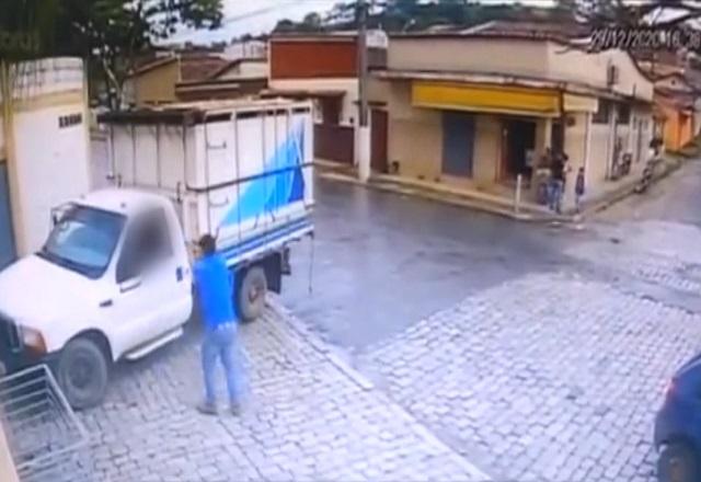 Nas imagens, é possível ver o suspeito chegando perto do veículo da vítima e efetuando os disparos em direção a ela. Em um momento de desespero, o idoso ainda tenta segurar a arma e empurrar a porta do caminhão contra o criminoso, que foge segundos depois.