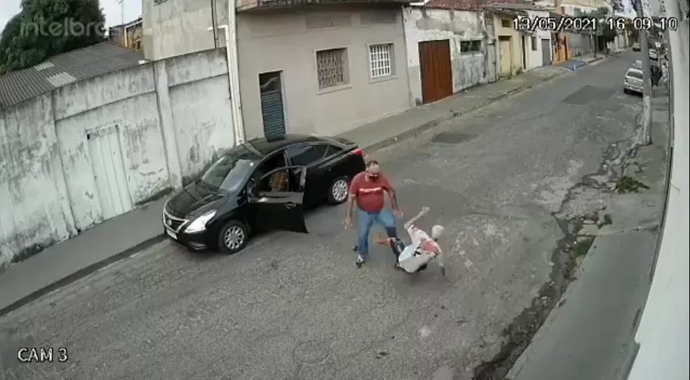 Ao longo do vídeo, é possível ver o momento em que a vítima aparece andando até a frente do veículo do motorista. Os dois começam a gesticular em uma visível discussão. Na ocasião, o motorista, sai do veículo e empurra o idoso, que se desequilibra e bate a cabeça no asfalto.