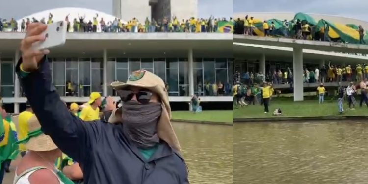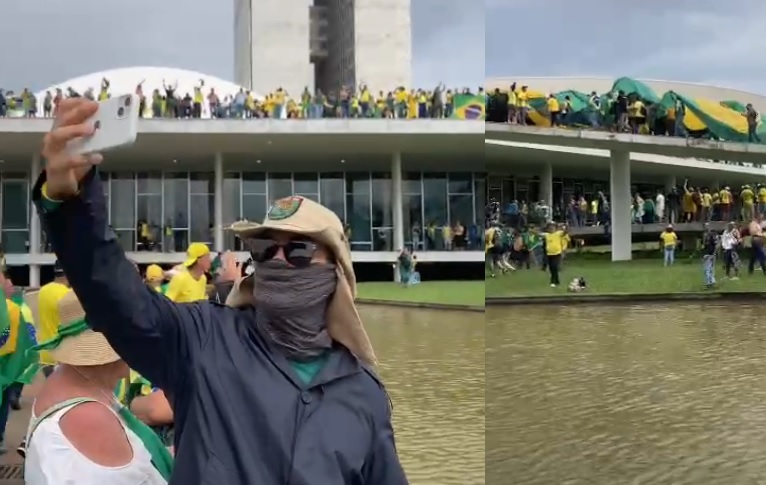 Já o presidente do Senado, Rodrigo Pacheco, pediu nas redes sociais “o rigor da lei” contra os invasores. Vidros do Congresso foram quebrados pelos manifestantes.