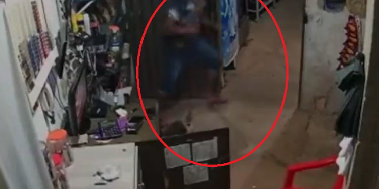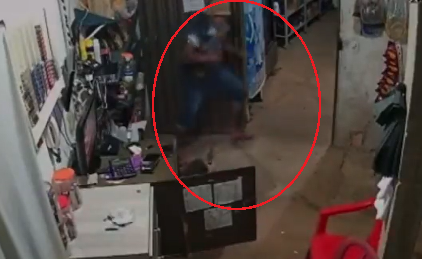 Conforme as imagens, o homem agacha na entrada do estabelecimento e aparentemente começa a conversar com a vítima. Após alguns segundos, dispara os tiros.