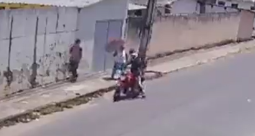 MANAUS (AM) – Uma câmera de segurança flagrou o momento em que uma idosa foi brutalmente agredida por uma dupla de assaltantes na rua 203, no núcleo 16, no bairro Novo Aleixo, Zona Norte de Manaus, na última terça-feira (8). Ela tinha acabado de buscar o neto na escola.