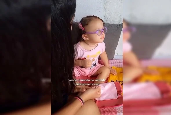 RECIFE (PE) – Após uma campanha realizada na internet, a pequena Olívia Silva, de 2 anos, ganhou um óculos apropriado e conseguiu enxergar o rosto inteiro de sua mãe pela primeira vez, nesta semana. A pequena nasceu com uma malformação no cérebro e tem Transtorno do Espectro Autista (TEA).