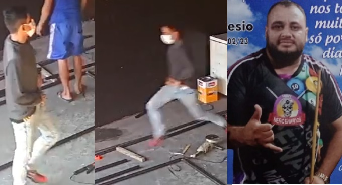 Depois o suspeito sai correndo, já com o crime cometido. Tudo aconteceu na noite de sábado (11). Além da vítima, aparecem nas imagens a esposa de Eliesio e um funcionário, que também corre.