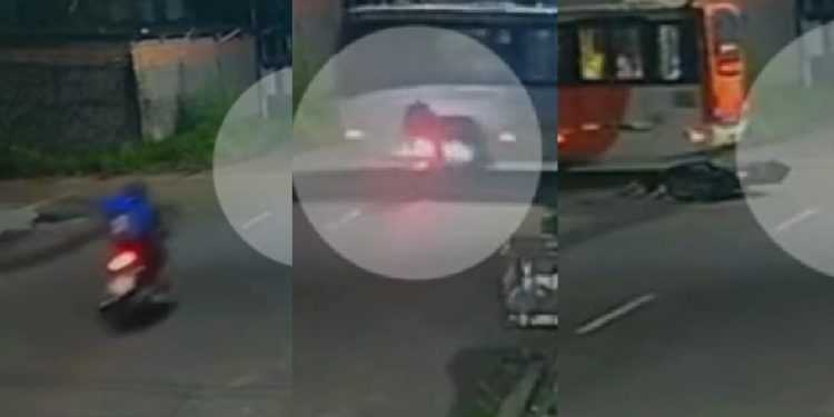 MANAUS – Um acidente ainda sem explicação foi gravado na noite de sexta-feira (19), em Manaus, e mostra o impacto violento de uma moto conduzida por entregador de app contra um ônibus.