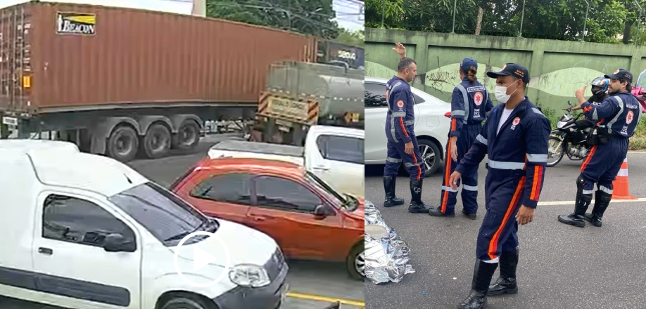 MANAUS (AM) – Um vídeo mostra o momento em que o tenente da Força Aérea Brasileira (FAB), Leonardo Matheus Silva, de 29 anos, acabou morrendo ao trafegar entre duas carretas na avenida Efigênio Salles, Zona Centro-Sul de Manaus. O acidente fatal ocorreu na manhã desta quarta-feira (2).