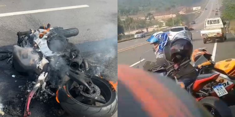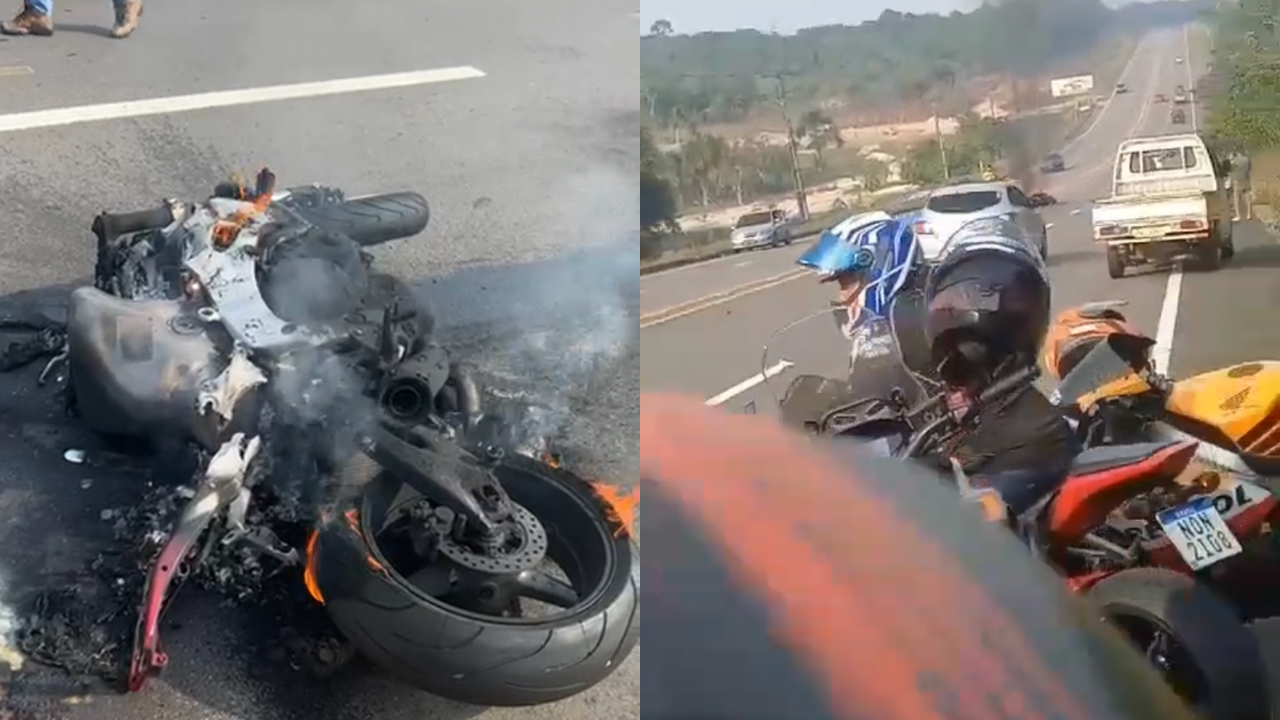 A moto dele ficou destruída após pegar fogo.
