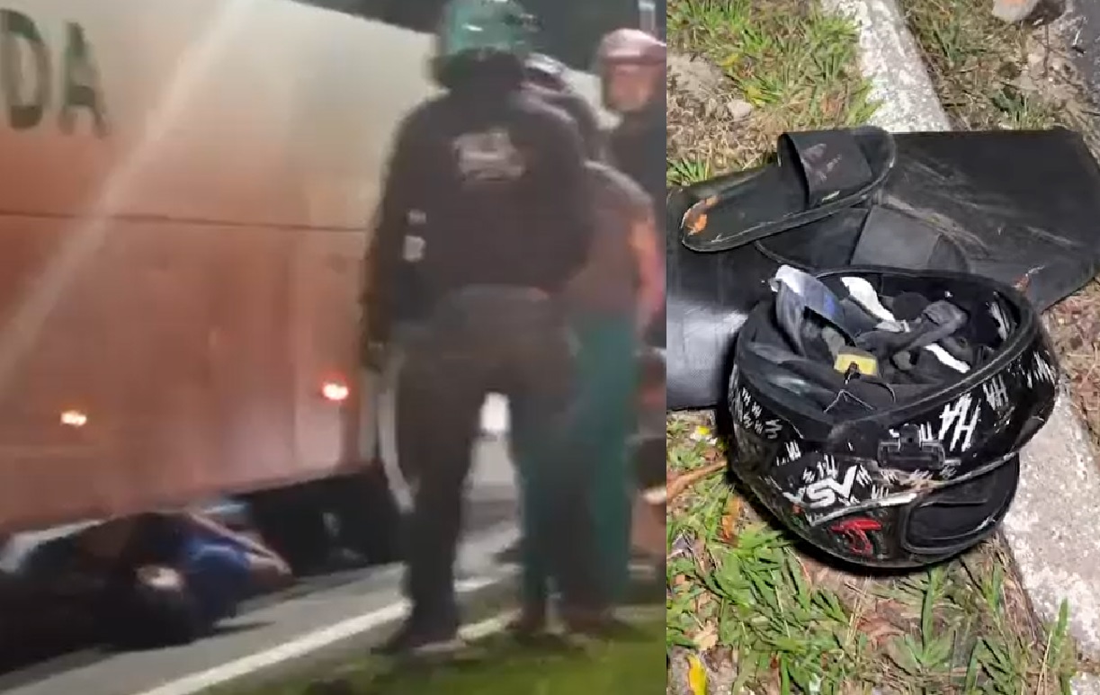 Testemunha afirmam que a moto apresentou falha mecânica, e ele caiu na frente do veículo. O motorista do ônibus ainda foi atento e conseguiu desviar para não passar a roda sobre o rapaz, porém ele acabou embaixo do ônibus, com o capacete quebrado e ferido gravemente.]