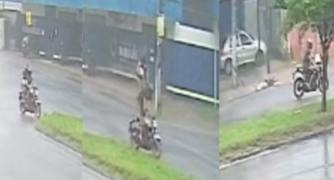 MANAUS (AM) – Durante chuva na tarde desta segunda-feira (26), uma mulher não identificada “voou” ao ter a moto fechada por um carro na avenida Arquiteto José Henrique Bento Rodrigues, no bairro Colônia Terra Nova, Zona Norte de Manaus. Ela sobreviveu.