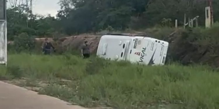 MANAUS (AM) – Na tarde deste domingo (15), um ônibus da empresa Vical, capotou na Avenida das Flores, zona norte de Manaus.