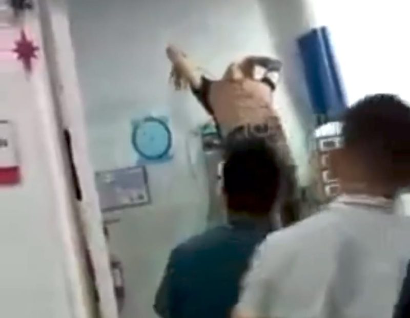 O momento da “possessão” deixou os profissionais da unidade hospitalar aterrorizados. As imagens foram gravadas por um profissional do local.