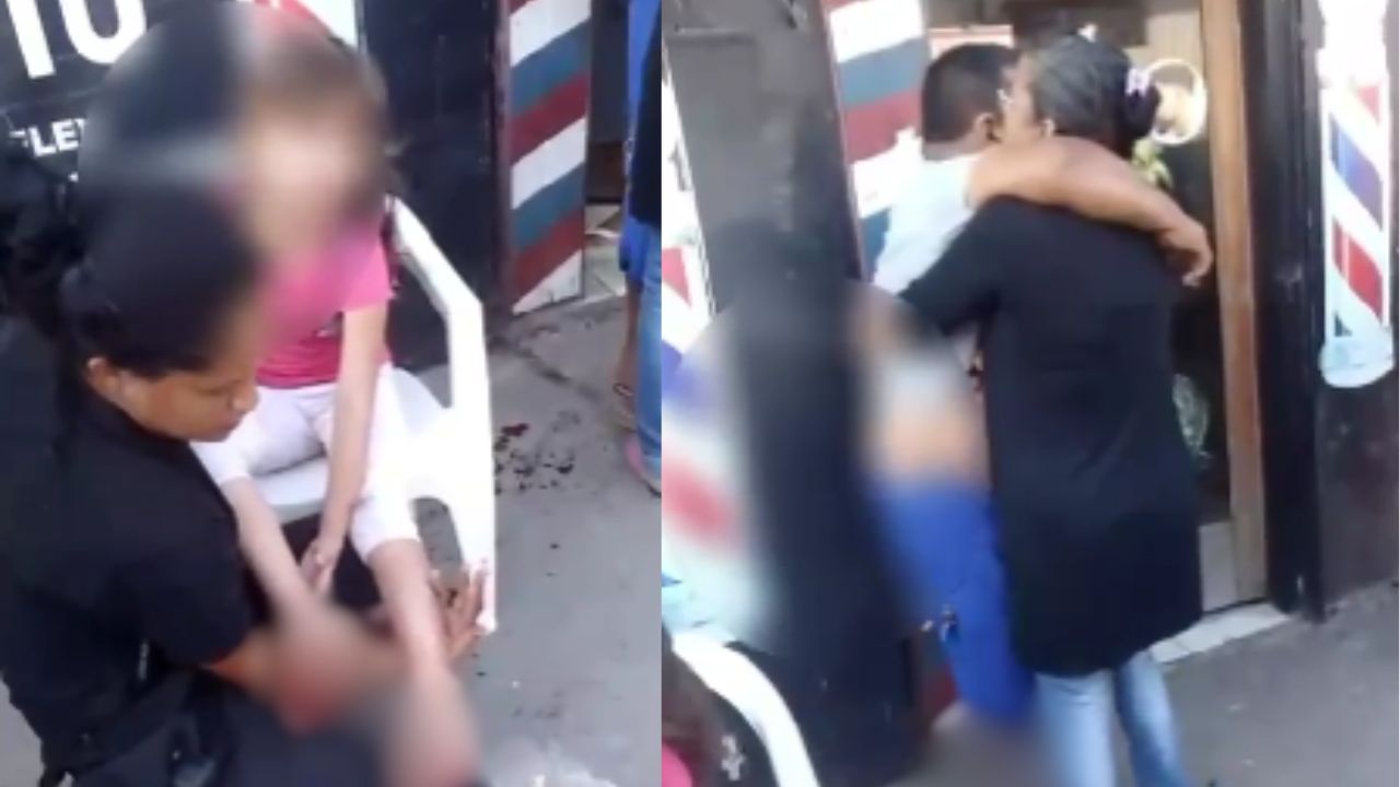 Na hora do tiroteio, a família estava passando no local. A criança parece ter sido atingida no pé e o pai na barriga. Muito sangue ficou espalhado na calçada.