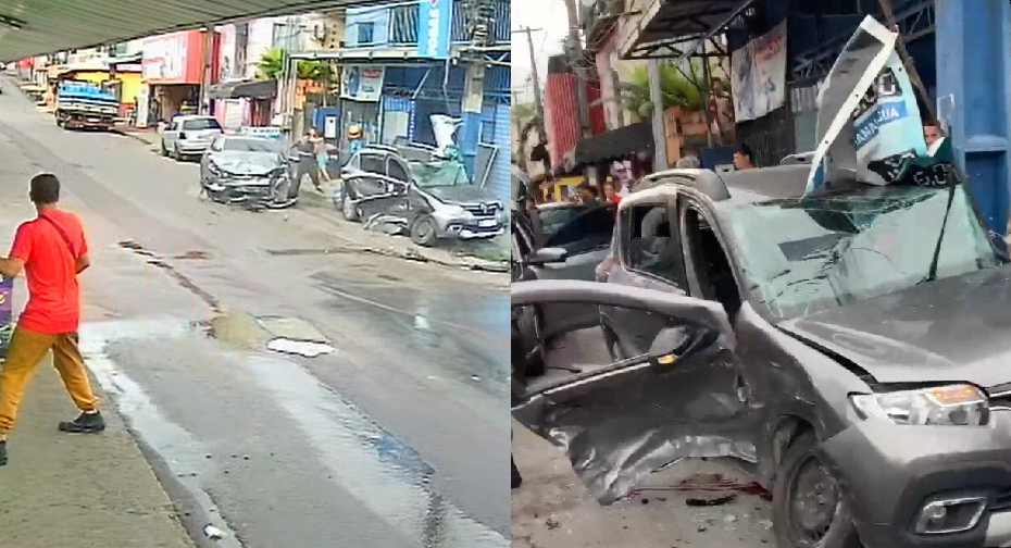 MANAUS (AM) – Um vídeo mostra como foi a colisão do carro usado pela “Quadrilha do Sandero” com um veículo de passeio de uma família, na tarde desta quarta-feira (30), no bairro Flores, Zona Centro-Sul de Manaus. Na ocasião, um assaltante e duas vítimas, uma mulher e uma criança ficaram feridos, segundo informações preliminares.