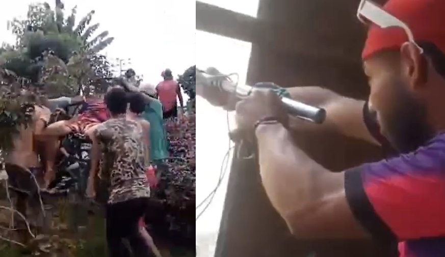 AMAZONAS – O vídeo de um ribeirinho que se feriu dando tiro de arma caseira no Amazonas viralizou nas redes sociais nesta sexta-feira (8). Na imagem é possível ver o rapaz atirando de dentro de uma embarcação para o mato, enquanto os amigos filmam.