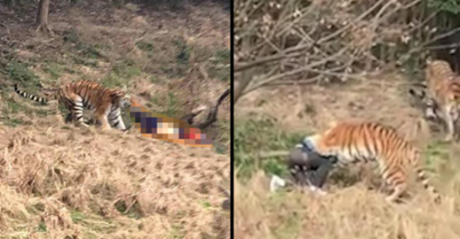 Funcionários do zoo usaram fogos de artifício para espantar os tigres, mas um dos felinos não se perturbou com a intervenção e atacou Zhang.