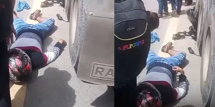 MANAUS – Um motociclista foi parar embaixo de um caminhão nesta quinta-feira (4), na avenida do Turismo, zona oeste de Manaus, e escapou milagrosamente. Ele ainda aparece mexendo o braço direito em um dos vídeos gravados no local.