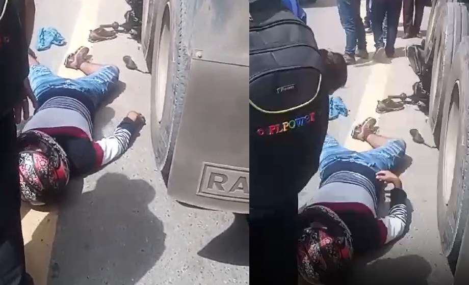 MANAUS – Um motociclista foi parar embaixo de um caminhão nesta quinta-feira (4), na avenida do Turismo, zona oeste de Manaus, e escapou milagrosamente. Ele ainda aparece mexendo o braço direito em um dos vídeos gravados no local.