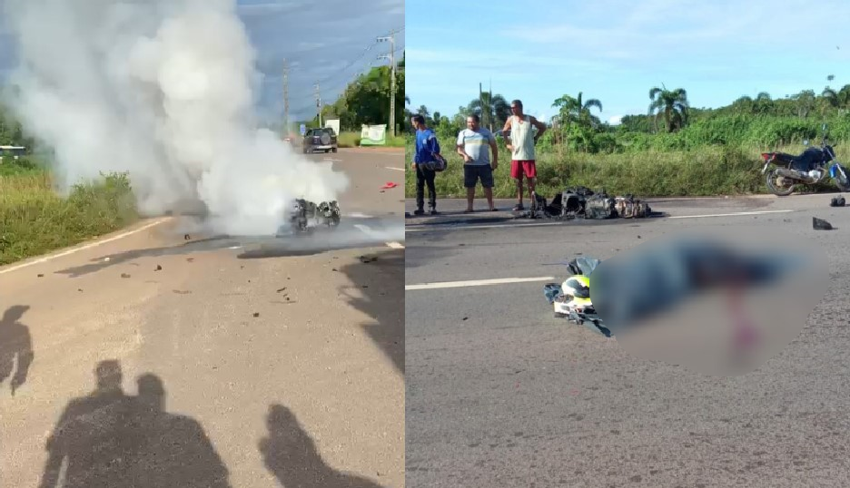 MANAUS (AM) – Um grave acidente foi registrado na manhã deste sábado (27) no KM 8 da AM-070, na estrada Manoel Urbano, nas proximidades de Paricatuba. Um motociclista morreu ao colidir com um veículo e sua moto chegou a explodir.