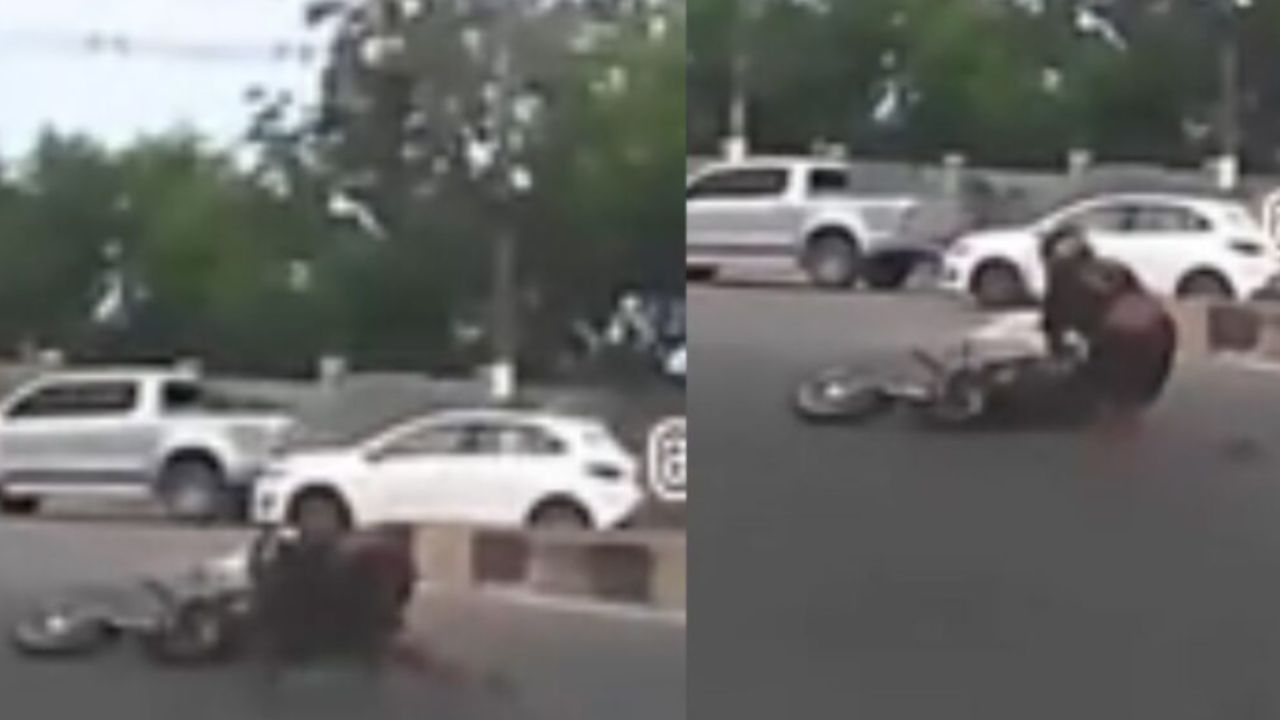 Mesmo com a violência do impacto, o homem sofreu apenas escoriações e conseguiu sair do local por conta própria logo após a queda. O tráfego seguia normalmente no momento do acidente, e o motociclista não foi atingido por outros veículos.