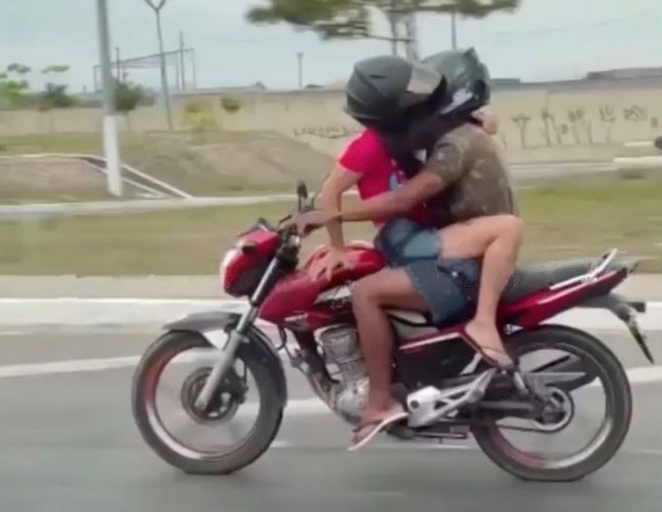 MANAUS – AM | Um motociclista, ainda não identificado, foi flagrado na manhã desta segunda-feira (18), aos beijos, enquanto pilotava com a namorada sentada no tanque da motocicleta, na avenida Torquato Tapajós, bairro Colônia Santo Antônio, zona norte de Manaus.
