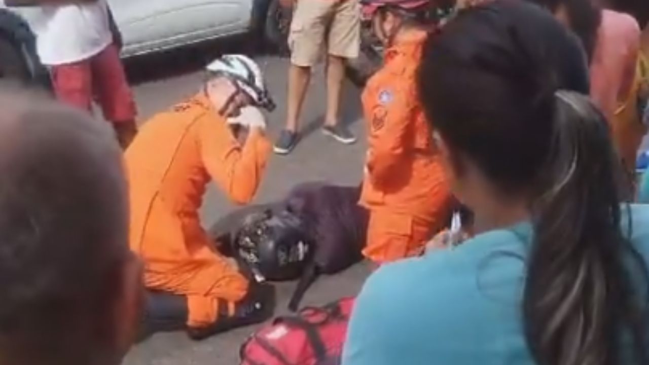 O animal morreu e o homem foi socorrido pelo Corpo de Bombeiros para o Serviço de Pronto Atendimento (SPA) Joventina Dias.