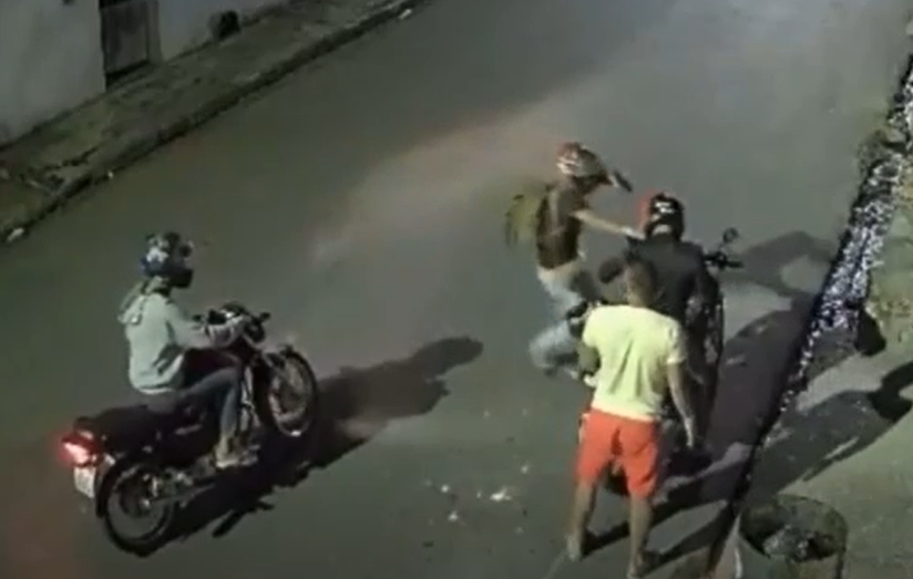 Nas imagens, o trabalhador chega ao destino final e está deixando o passageiro, mas logo em seguida dois homens em outra moto chegam. Um deles aponta uma arma de fogo e faz ameaças. Ambos usam capacete.