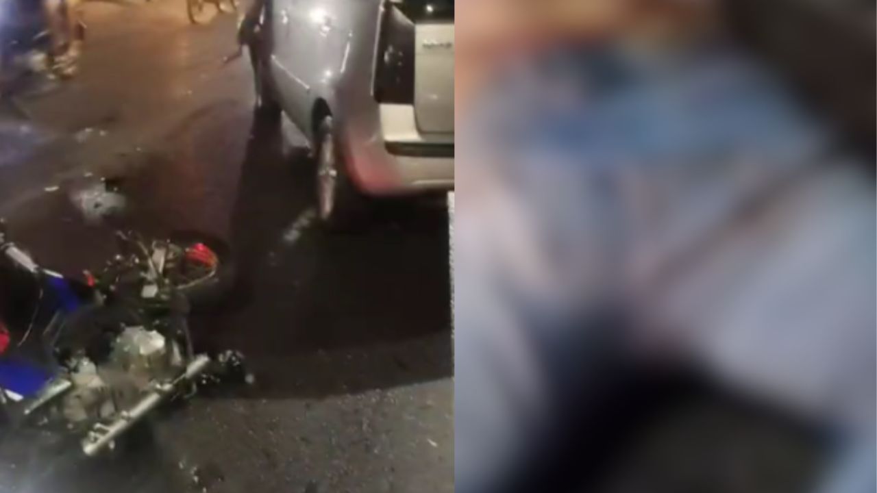 No impacto a vítima ficou com os membros quebrados e inconsciente na pista.