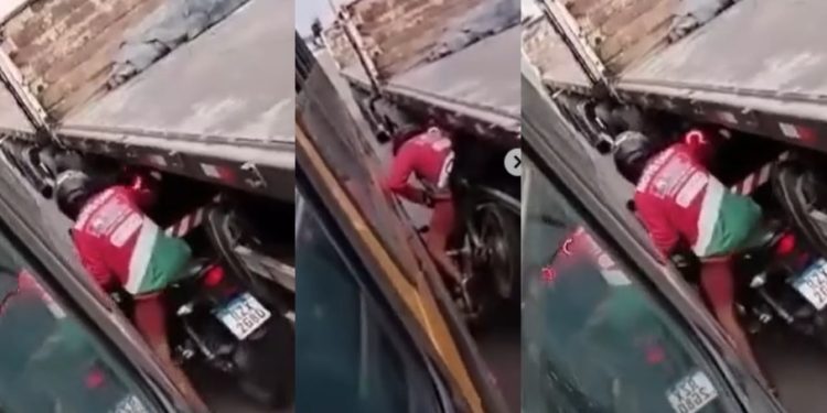 MANAUS – Um vídeo que circula nas redes sociais dos manauaras nesta sexta-feira (10), mostra o exato momento em que o motoqueiro tenta passar por onde não dá, e acaba prensado entre uma carreta e um busão.