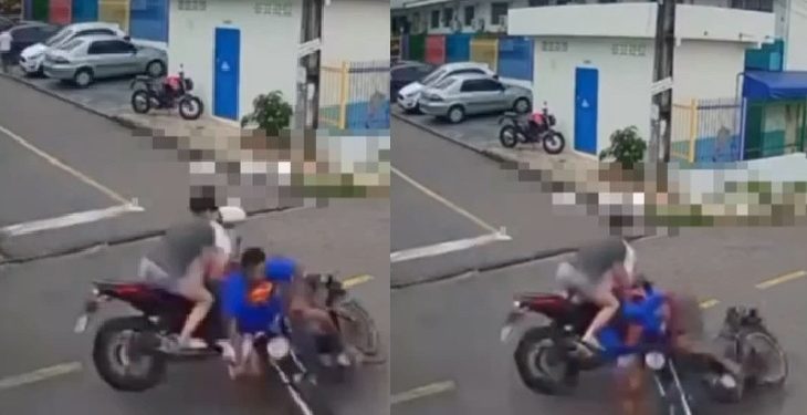 MANAUS – Dois motoqueiros não identificados se bateram na terça-feira (17), num cruzamento do bairro Santo Antônio, na zona oeste de Manaus. Apesar da pancada, depois ele se levantaram e foram pra porrada.