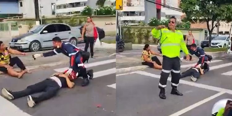 MANAUS – Um grave acidente deixou um homem estendido no chão na avenida Efigênio Salles, nesta quarta-feira (24), até a chegada do Serviço de Atendimento Móvel de Urgência (Samu). Uma testemunha passou pelo local e fez as imagens.