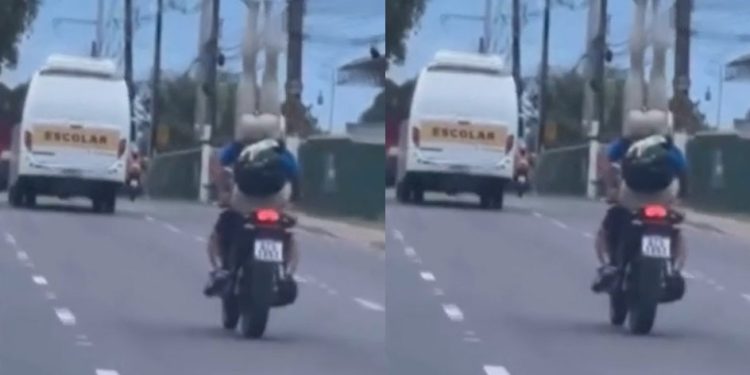 A moto passava perto do shopping do bairro quando foi filmada passando na rua. “Achei que era um sequestro!”, escreveu um internauta. “Manaus nunca decepciona”, brincou outro.