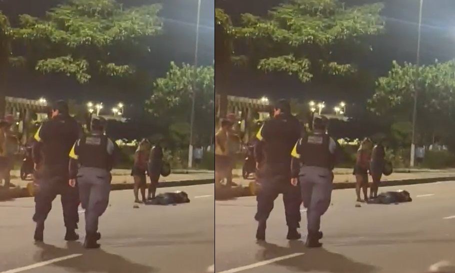 A imagem do motoqueiro no chão causou revolta nas redes sociais. O homem não identificado ficou agonizando no chão, enquanto o causador do acidente não parou.