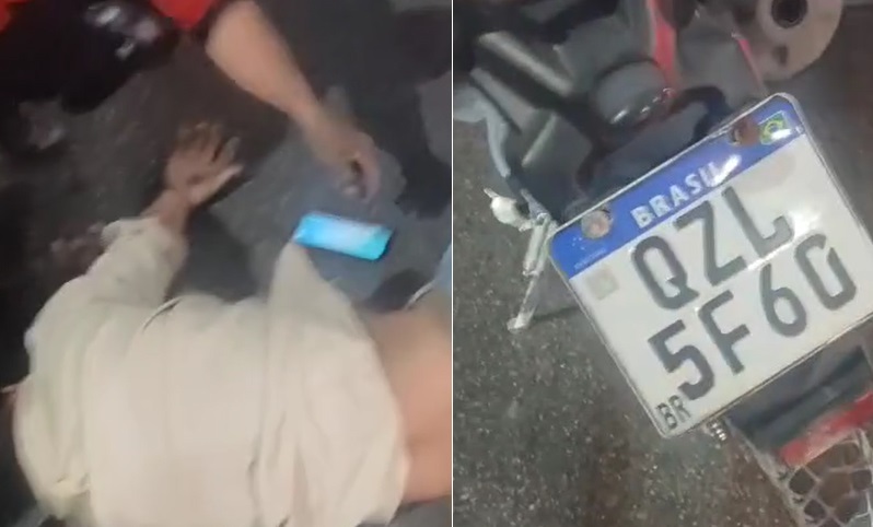 MANAUS – Um motoqueiro está em estado grave após acidente brutal na rotatória da Avenida Álvaro Maia, no bairro Nossa Senhora das Graças, Zona Centro-Sul de Manaus. Testemunhas gravaram ele apagado e a placa da moto para tentar achar a família.