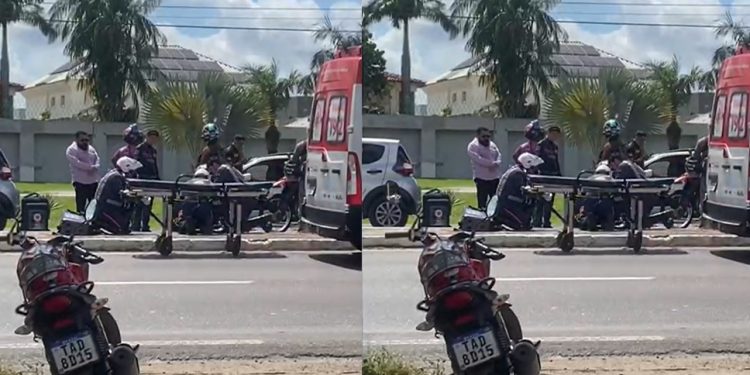 O motoqueiro e o garupa foram imobilizados e levados a uma unidade hospitalar não informada. O trânsito no local ficou lento, mas já foi liberado.