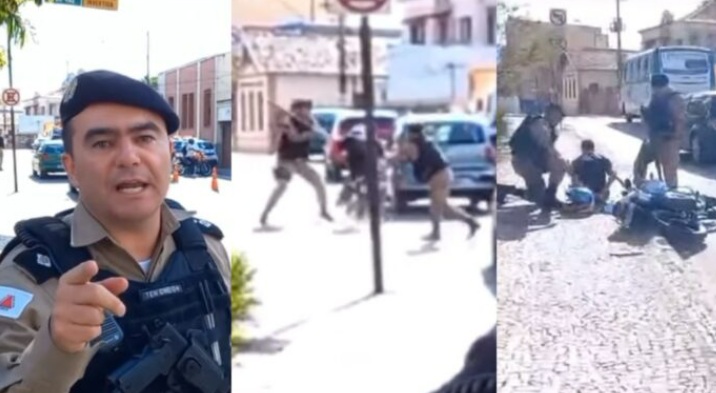 O vídeo foi gravado no exato instante em que um PM grava um vídeo na última quarta-feira (18), em Conselheiro Lafaiete.