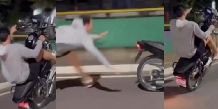MANAUS – Um motoqueiro gaiato se deu mal na avenida Brasil, bairro Compensa, zona oeste de Manaus, depois de tentar dar um grau e cair da moto nesta sexta-feira (11), em Manaus.